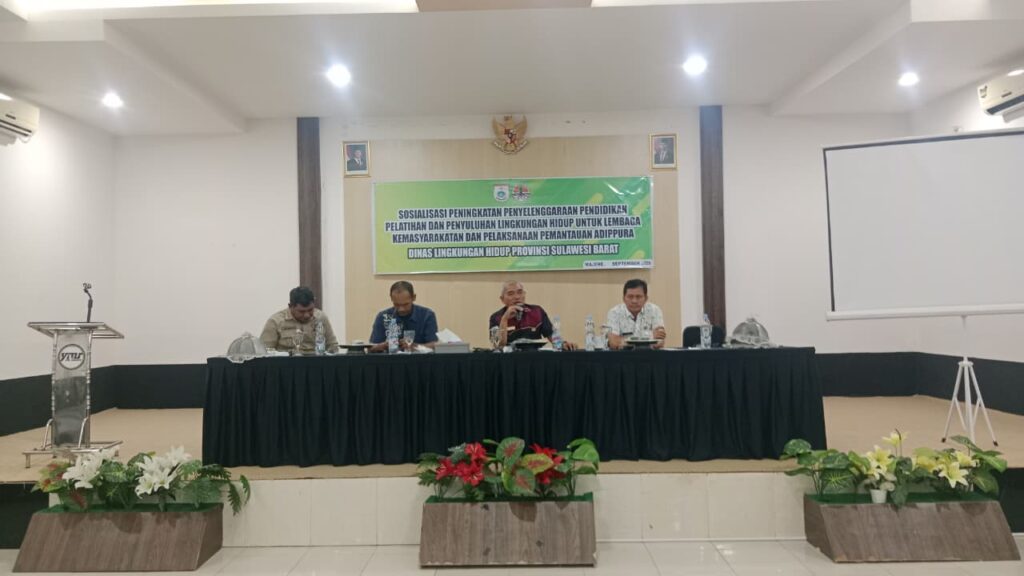 Majene – Dinas Lingkungan Hidup (DLH) Provinsi Sulawesi Barat melaksanakan kegiatan Sosialisasi Pendampingan, Pembinaan untuk Lembaga Kemasyarakatan dan Pemantauan Adipura yang berlangsung di Wisma Yumari Madia, Kabupaten Majene pada hari kamis, 25 September 2025.