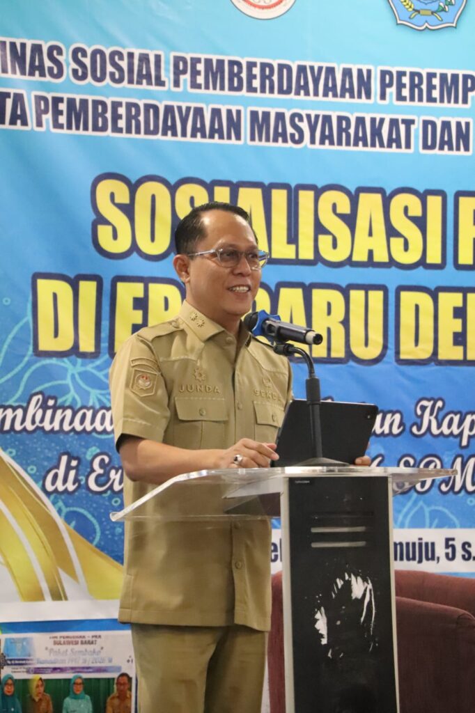 Mamuju – Sekretaris Daerah (Sekda) Provinsi Sulawesi Barat (Sulbar), Junda Maulana, menghadiri sekaligus menjadi narasumber pada kegiatan pembinaan dan peningkatan kapasitas pengelolaan posyandu di era baru dengan enam Standar Pelayanan Minimal (SPM). Kegiatan ini dilaksanakan oleh Dinas Sosial, P3A, dan PMD Sulbar melalui sosialisasi tingkat provinsi, Senin, 6 April 2026.